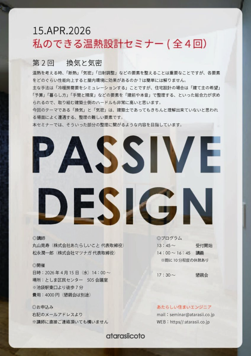 本セミナーでは、そういった法律上の観点も含めて、換気と気密の整理に繋がるような内容を目指しています。
